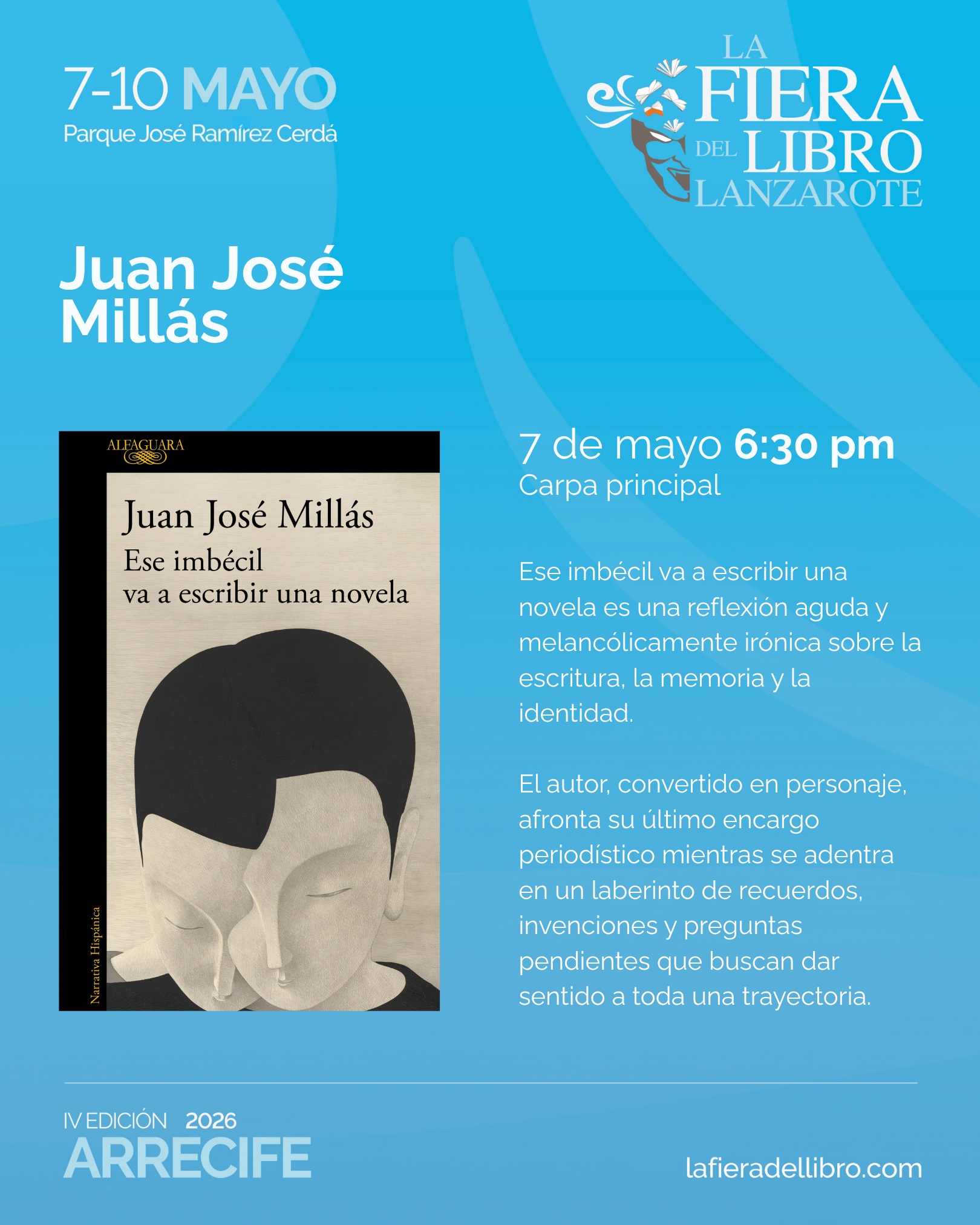 ¡Marca las fechas en tu calendario y prepárate para vivirlo en Arrecife, del 7 al 10 mayo,  viviremos cuatro días inolvidables llenos de literatura, cultura y emociones.!